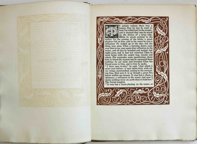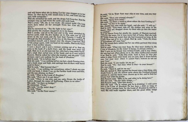 The first Roycroft Press finely printed version of this work, fully titled "So Here Then Are Dreams". 82pp. Bound in 1/4 tan suede with gilt titled label and paper covered boards. Printed by Elbert Hubbard in two colours (in the style of the Kelmscott Press) on Roycroft handmade paper and bound in paper over boards with suede spine. The initials, borders, and ornaments designed by Saint Gerome. The bottom end of the spine is chipped and there is scarring of the suede at this end about 6cms. in length. The corners are bumped and the spine label is chipped. Internally the condition is about fine and without foxing. From the prestigious Africana library of Alpheus Fuller Williams (Vergenoeg) with his bookplate on the front pastedown and stamped number on the ffep. The Roycroft Press was highly influenced by William Morris and his Kelmscott Press and their books are very much in the Kelmscott style and very appealing as such.