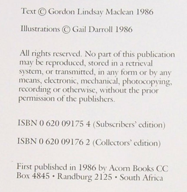 Original dust jacket. Original green cloth boards with gilt titling on the spine and a decorative device on the upper board. Decorated end papers. 150 pages and 37 colour plates by Gail Darroll with numerous black and white in-text pencil drawings.