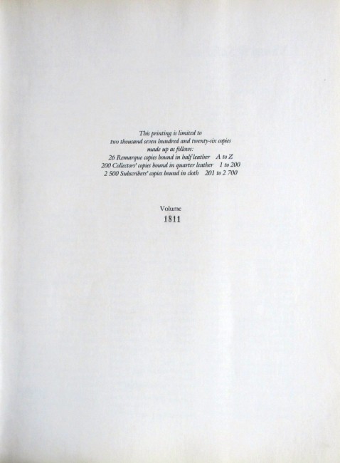 Limited standard edition #1811 of 2700, slightly creased certificate of authenticity, laminate applied over dust jacket, illustrated eps. FEP with owner's stamp, bottom corner creased, internally clean, slightly cocked paper block.