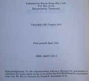 Original dust jacket. Original greenish grey cloth covered boards with gilt titling on the spine. This is a variant binding and is less common than the lighter grey cloth binding which is paler in colour. 10 prelims, 134 pages.
