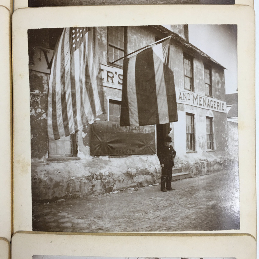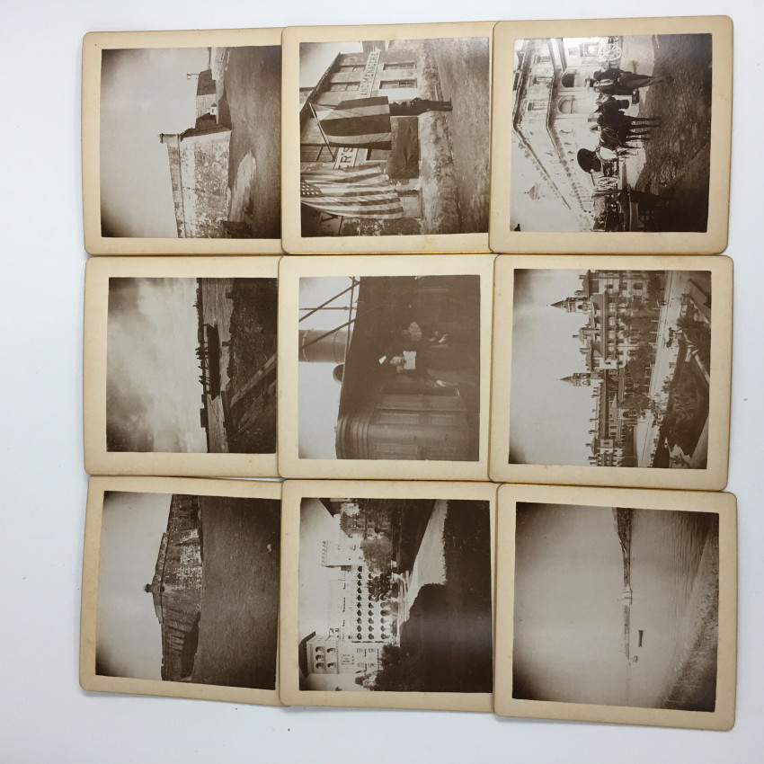 19 mounted albumen photographs of Cuba that measure 4 x 4 inches, edged with gilt. 14 of the cards depict scenes (pre-automotive) of turn of the century Cuba. The other five contain pictures of members of the traveling party. All are in vg condition. These are early vernacular travel images, possibly Kodak. All backs are clean.