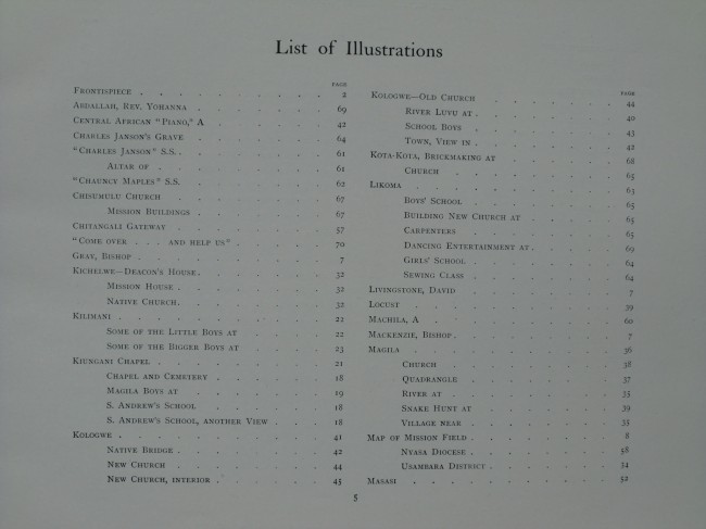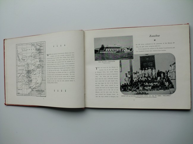 Beginning with short biographies on the likes of David Livingstone, Bishop Gray, and Bishop Mackenzie, the book then commences at Zanzibar, and takes the reader through Kiungani, Kilimani, Mbweni, Pemba, Magila, Kologwe, Mkuzi, etc... with beautifully taken photographs of the landscapes, villages, towns, people, estates, churches, etc..