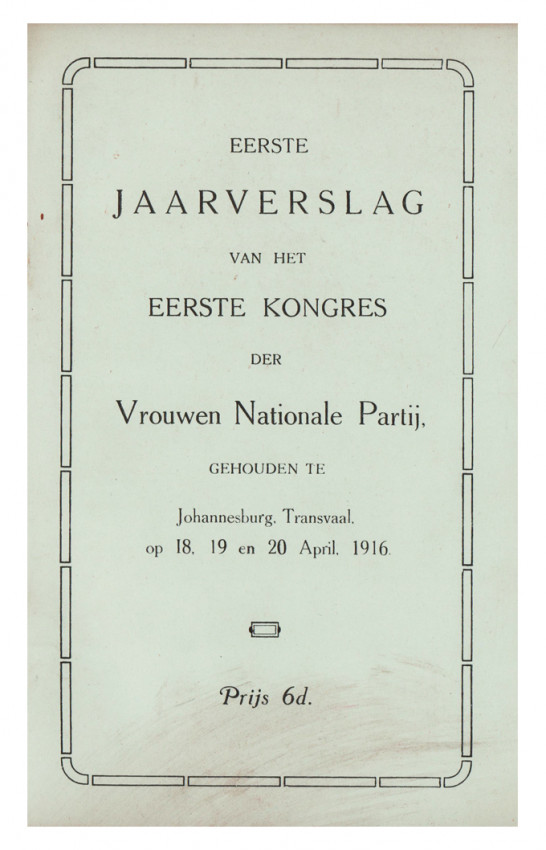 Half title reads: Eerste Jaarverslag Van de Vrouwen Nationale Partij 1915 – 1916