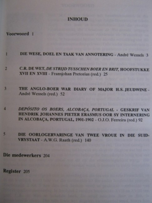 The second item, in English, is an edited version of the Anglo-Boer War diary of Major H S Jeudwine (who was a general in the first world war). There is some relationship with the first item in that Jeudwine\'s column harried Manie Maritz\'s commando - closely linked to General de Wet\'s forces - for the first half of 1901.