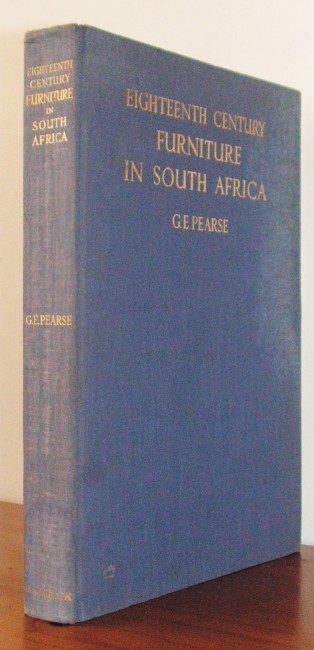 Folio; original blue cloth, lettered in gilt on spine and upper cover; no dustwrapper; tinted top edge; pp. ix + (i) + 193; generously illustrated with photographs and diagrams. Cloth rather worn, and fore-edges of boards rather damp-stained, with some erosion to lower fore-edge; discreet archival tape strengthening to upper hinge; generally very faint trace of damp-staining to fore-edges of leaves; a little foxing. Fair externally; good internally. Still the authoritative treatise on this popular subject, and the standard reference for collectors. "This book is written as a companion volume to my Eighteenth Century Architecture in South Africa. In it I have endeavoured to trace the development of furniture in South Africa, and to indicate the sources of the influences responsible for that development. During the period involved the burghers in Cape Town and the wealthy farmers in the country districts built lovely homes, many of which have been preserved, and filled them with beautiful pieces of furniture, silverware, china and glass. The standard of taste both in Holland and England, the countries with which the settlement at the Cape was most closely associated was, at the time, exceptionally high. Most of the pieces of furniture illustrated were made of South African wood in the late eighteenth and early nineteenth centuries."