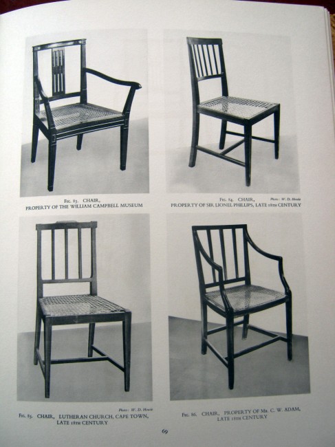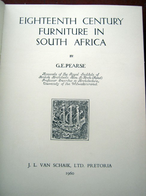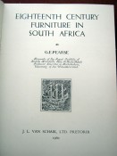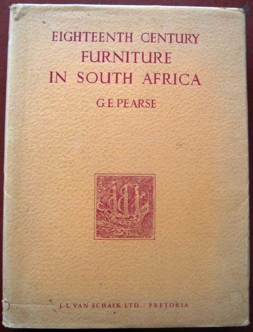 ix, 193p. Blue cloth boards with gilt lettering. Dust jacket has a small tear to upper front cover and the head and foot of spine have some slight wear. The contents are very clean. Covers seventeenth and eighteenth century furniture at the Cape and in Holland, as well as chapters on glass, silver and china, and timber. Illustrated throughout with b/w photographs. A very good copy.