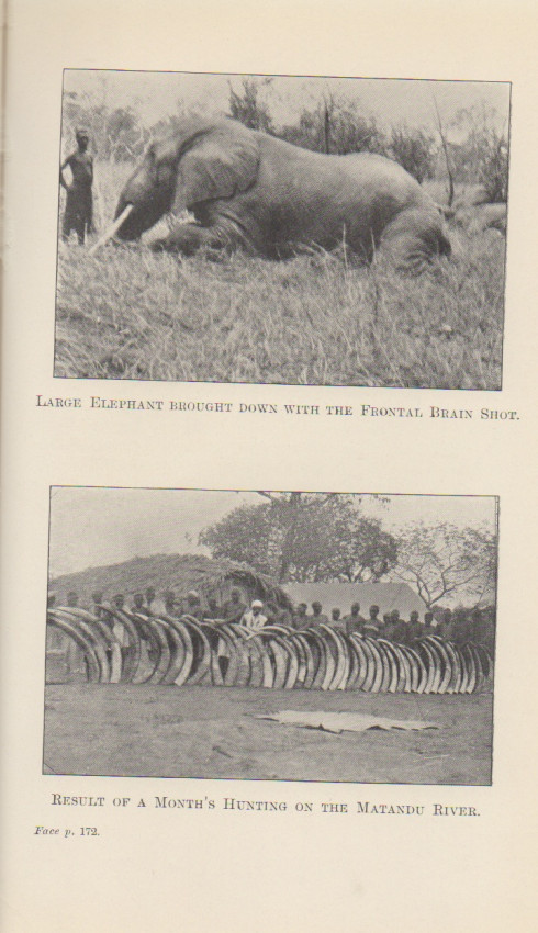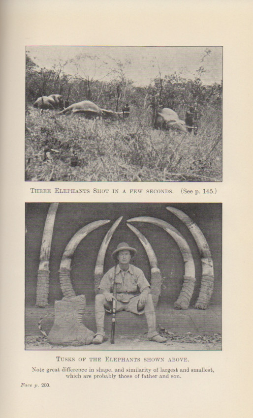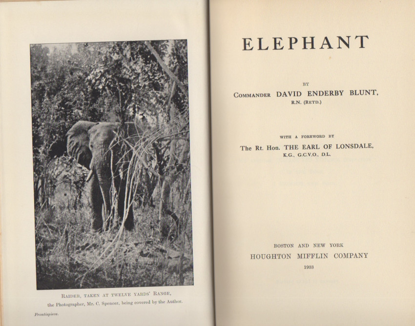 Blunt was an elephant control officer in Tanganyika, hunting primarily in the Linda Province. He details the natural history and biology of the elephant, relates his experiences as a cultivation officer and provides an excellent chapter on past and present elephant hunters. "I am sure that an elephant looks on human beings in the same way as we look on a dangerous insect." A classic of African elephant hunting. Original gray cloth with bright white spine titles and bright white elephant vignette on upper board. Cloth very lightly soiled. Original endpapers firm and tight. Well illustrated with photo plates. Square corners.