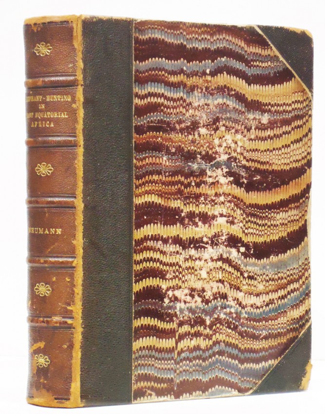 First edition: xix, 455 pages, frontispiece - 'Love-Making' after a painting by E. Caldwell, 1 colour plate of butterflies, 62 illustrations by J.G. Millais E. Caldwell and G.E. Lodge as well as photographs, folding map, contemporary half morocco with marbled boards -the boards and the corners are rubbed and the leather is starting to split, titled gilt on the spine where leather is worn at the edges of the spine and starting to split at the top of it, - bookplate on the front paste-down end paper, starting to wear at the hinges, overall a good copy.