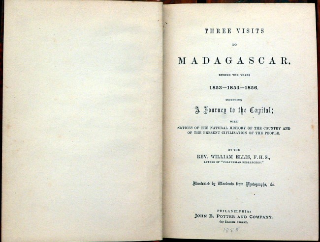 Ellis was sent to Madagascar three times to investigate whether Christians were being maltreated. That investigation was not productive, as he was denied access to the capital, but it was the first widely read account of the island, and a thorough description of the society, customs, religion and natural history.