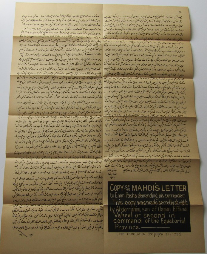 Fold-out map + fac-simile of the Mahdi's letter in pocket at rear.