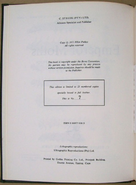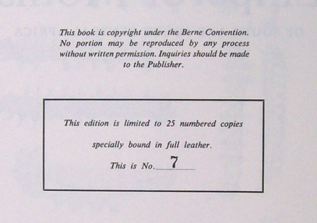 Copy Number 7 of only 25 that were specially bound in full leather. Original full dark brown leather binding with gilt titling on the spine. xi prelims, 150 pages, errata slip, 43 plates, some colour, some black and white photographic, plus black and white in text drawings.