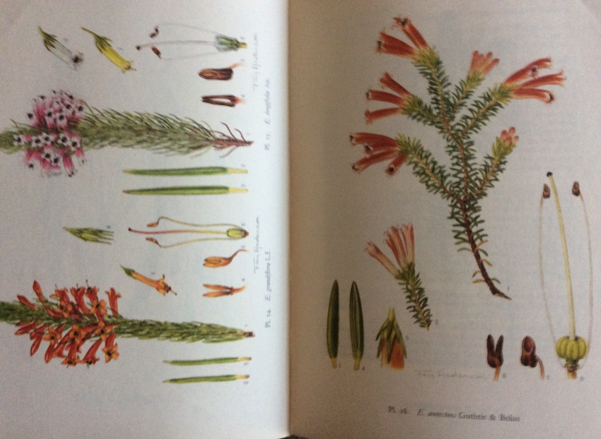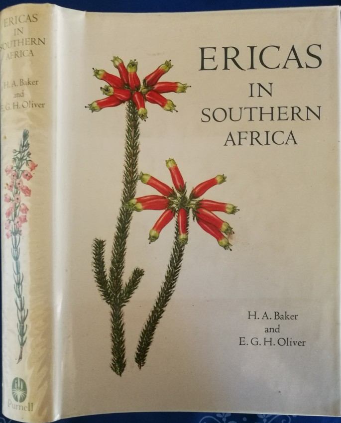 This landmark book on the South African Ericas is now fifty years old. It was dedicated to the memory of Francis Guthrie and Harry Bolus [both born in the 1830s], "pioneers in the study of Ericas in Southern Africa", and its 6 pp foreword was contributed by Dr H M L Bolus, of the University of Cape Town's Bolus Herbarium.