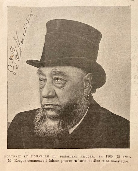 This issue contains pictures and articles relating to Paul Kruger's visit to Europe. The black & white cover illustration depicts Kruger as an old man, with his eyes coloured pale blue. The caption reads: "L'Oncle Paul" par Ch. Leandre. The picture is repeated inside the magazine, together, with images of Kruger at 40, 50 and 75 years of age.