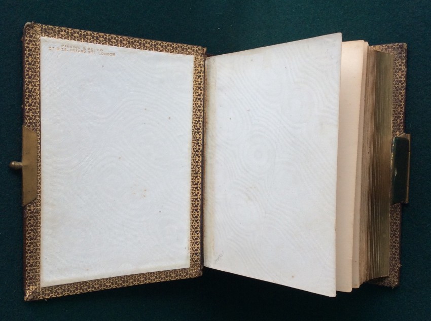 Original brown morocco, gilt tooled, gilt metal clasp. (lightly scuffed, verdigris to clasp)