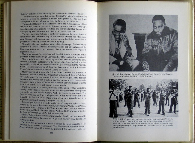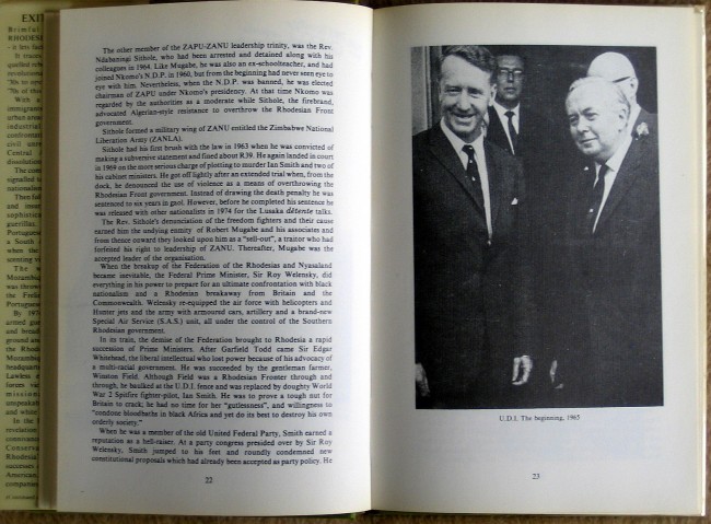 "From UDI to Marxism" - the book traces Black nationalism from quelled rebellion in the 1890's to faint revolutionary stirrings in the 20's and 30's to open warfare in the 60's and 70's and charts the events leading up to the 1980 elections, politics and a bush war, leading to Mugabe's victory, the killings around Bulawayo, and the rise of the 5th Brigade.