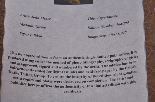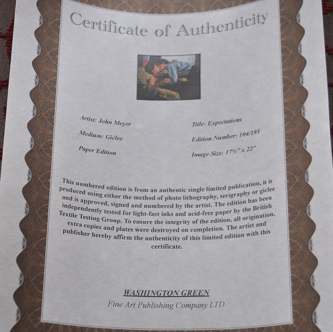 Approved, signed and numbered by the artist, this limited edition Giclee is no. 104/195.