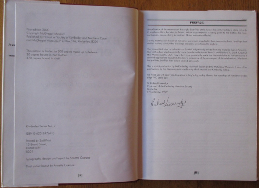 "Fredericka, a Scottish rather adventurous lady, arrived in Kimberley from the Klondike where she had travelled to stake a gold claim in 1897. She maintained a diary of her experiences and observations during the siege of Kimberley".