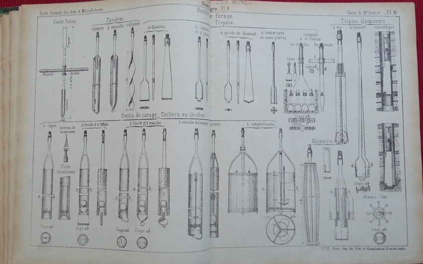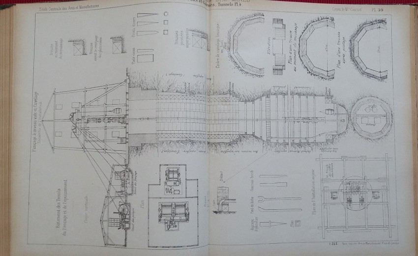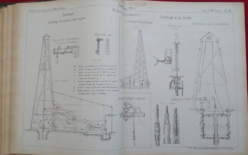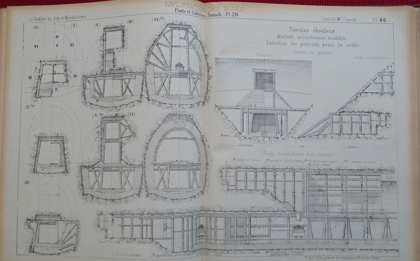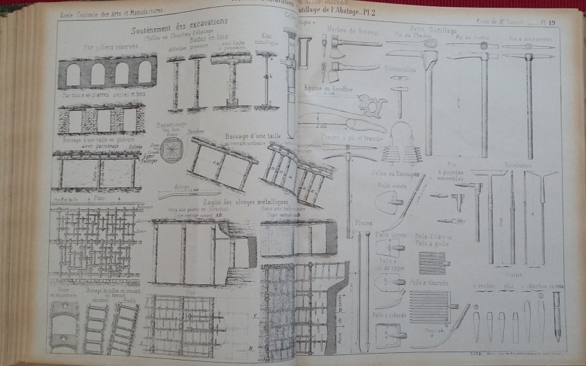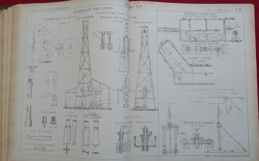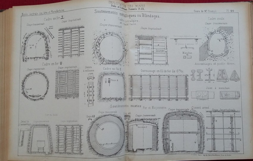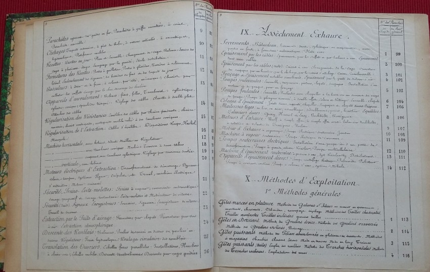 List of Chapters (translated from French): Preliminary. Transport of the force. Survey. Research and General walk in operating system. The work of excavation and equipment of the abatage. Wells, galleries and tunnels. Ventilation, lighting. Underground transport. Extraction, travel of staff, lowering of the embankments. Dryer, pumping. Methods of operating system. The seats of operation, external transport, manipulation.