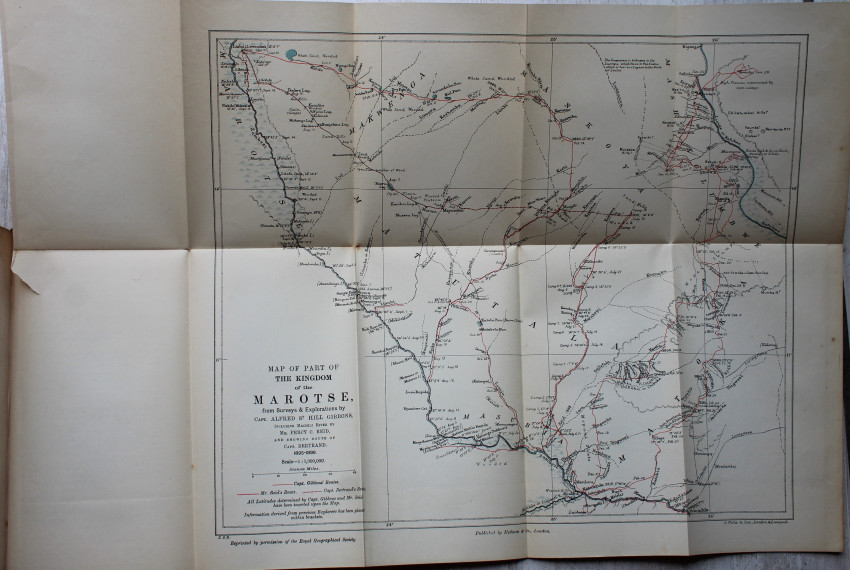 ‘A well-written account of the author’s journey up the Zambesi into Barotseland and into the country of the Marotse. He ably describes the region, with attention paid to the area around Lake Victoria. Gibbons relates episodes of hunting buffalo, lion, roan, eland, hartebeest, and wildebeest in the region. His frontispiece portrait reveals Victorian mustachios to die for’ (Czech: An annotated Bibliography of African Big Game hunting Books, 1785 to 1950, page 62)