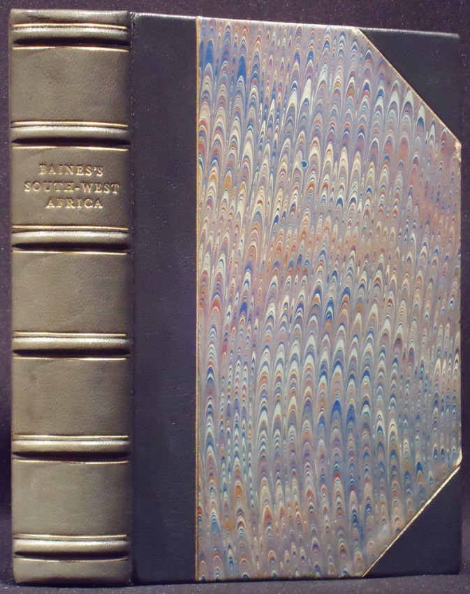 535 pages (pages [390] - [457] or sections *1 - *5 are additional to the pagination making a total of 603 pages - all copies were issued thus, 3 colour folding maps, chromolithographic frontispiece 'Regiment of Flamingoes - Swakop River,' 7 engraved plates, 27 wood-engraved illustrations in the text, pencil markings in the margins of several pages of the text, rebound in half green leather with marbled boards and edges, spine gilt, bookplate on front paste-down endpaper, an inscription on the free endpaper, marbled edges, a very good copy.