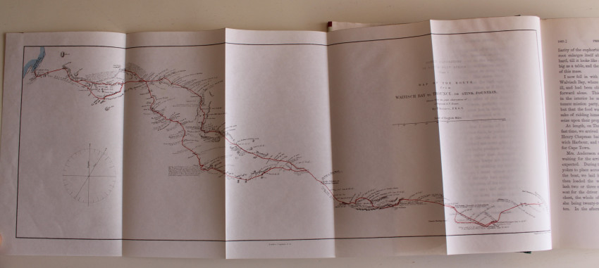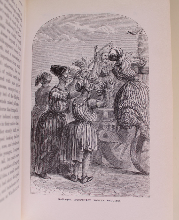 535 pages. Three maps, numerous colour illustrations. Frontispiece: “The Motjohaara or Damara Mother Tree” Original Water colour by Thomas Baines. A facsimile reprint in very good condition. Number 769 of a limited edition of 1000 numbered copies.