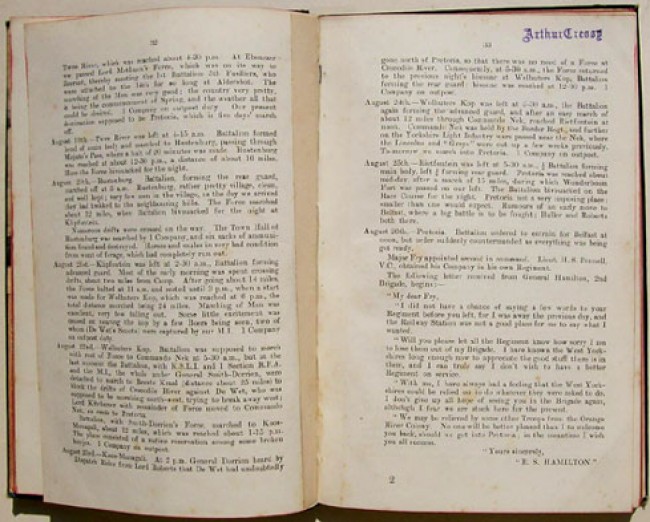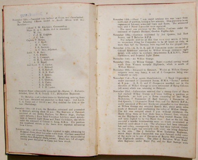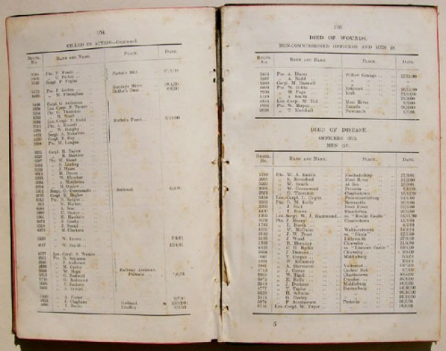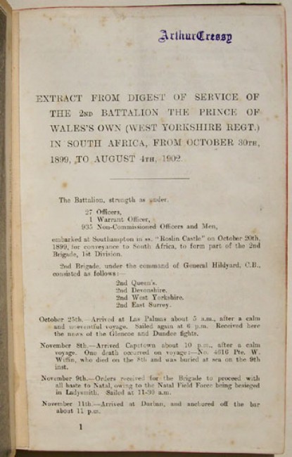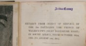 This 106 page document has been placed in a navy blue cloth binding that has no titling. The original wrappers of this "Extract from Digest of Service" are not present. The ten illustrations that have been stuck in at the front and the rear were not issued with the original pamphlet. Somebody must have rescued the original issue and turned it into an extra illustrated album.