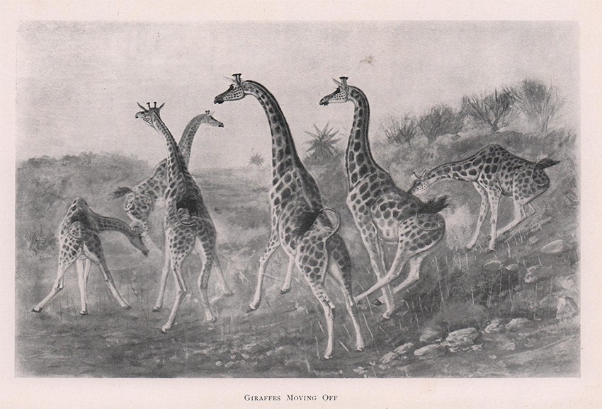 254 pages, frontispiece – giraffes moving off, 49 plates, map, red cloth gilt, light foxing in the text and slight spotting on the edges, covers starting to fray around the edges, corners bumped, a good copy.