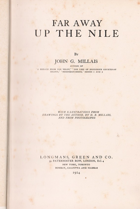 Czech (Kenneth) An Annotated Bibliography of African Big Game Hunting Books 1785 -1999, page 197: 'Millais, well known as a naturalist, illustrator, and big-game hunter, travelled to the Dinka territory in the Sudan. In the Sudd region, his party hunted reedbuck and kob but was unsuccessful in finding elephant. Continuing along the Nile valley, they bagged buffalo, hartebeest, and trophy-roan. Perhaps his best chapter describes hunting buffalo and eland in the Bahr-el-Ghazal region. The illustrations, for the most part, are taken from Millais' excellent sketches'.