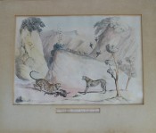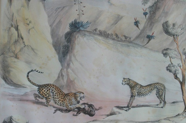 Original hand coloured lithograph from Portraits of the Game and Wild Animals of Southern Africa, Delineated from Life in Their Natural Haunts, During a Hunting Expedition From the Cape Colony as Far as the Tropic of Capricorn in 1836 & 1837, with sketches of the field sports: Felis Leopardus - The Leopard.