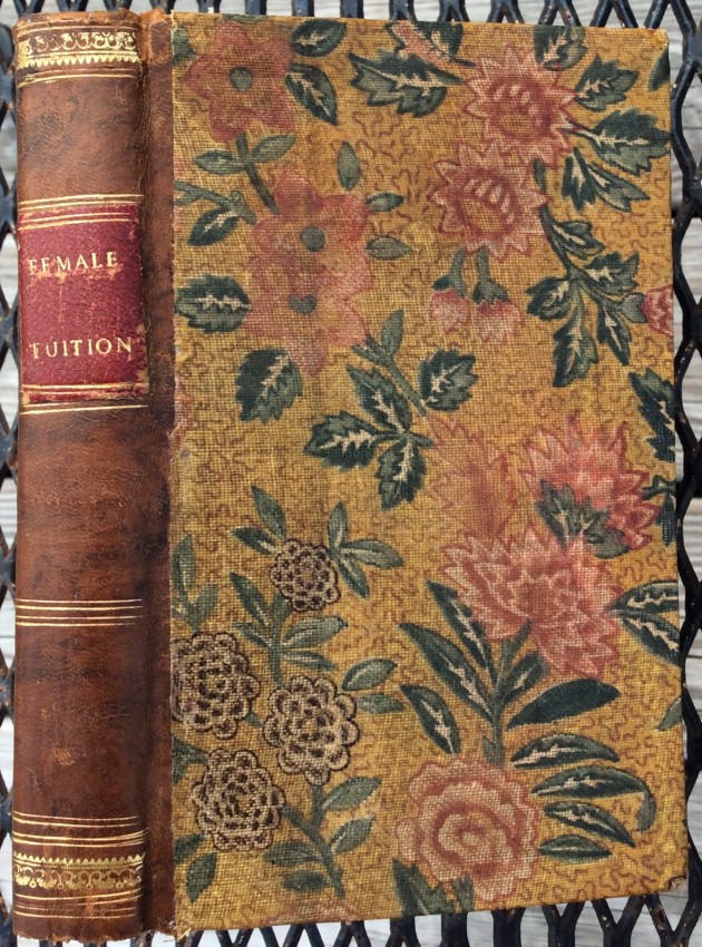 Bound using contemporary materials: leather-backed Chinese floral patterned-cloth covered boards, spine gilt with red morocco spine label