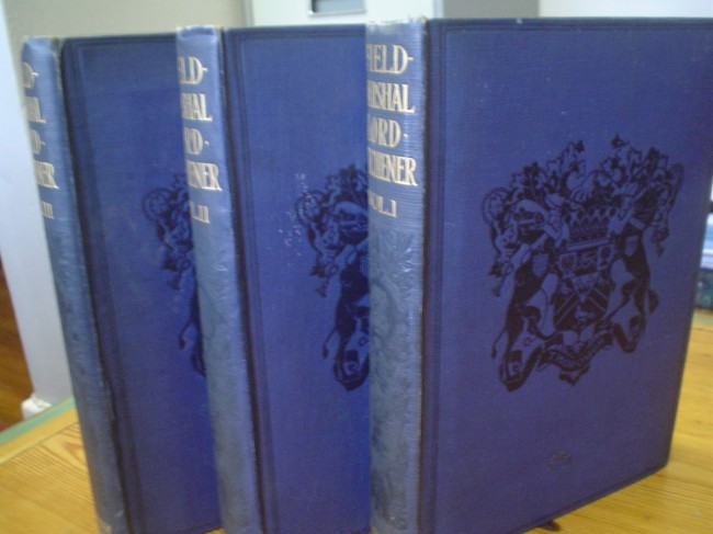Blue cloth with black embossing on fronts and gilt lettering on spines. Contents and binding tight with slight foxing throughout all three volumes. Pages 240, 241 and 256. 53 plates in total. Volume II covers the Boer War in detail.