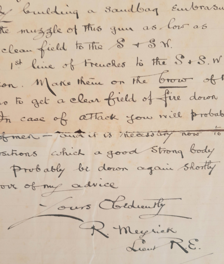 A three page handwritten manuscript (undated) by Lieutenant R. Meyricke of the Royal Engineers, addressed to a Colonel, during the campaign in Natal.