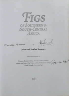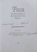 Figs of Southern & South-Central Africa. Standard Edition-Signed by John & Sandie Burrows and Simon van Noort to title page. This book by the husband and wife botanical team which also produced the definitive work on ferns of the region in their Southern African Ferns and Fern-Allies (1990), was eleven years in the making. This new authoritative work provides detailed information on the 48 native figs (Ficus) of South Africa, Namibia, Botswana, Swaziland, Mozambique, Zambia and Malawi. Also included are the commonly cultivated figs which were introduced into the region for economic and ornamental horticulture, and the other members of the fig family (Moraceae) found in the region, incluing the cultivated mulberry (Morus), the breadfruit (Artocarpus), and the timber tree which produces iroko lumber (Milicia). A total of 88 species are covered.