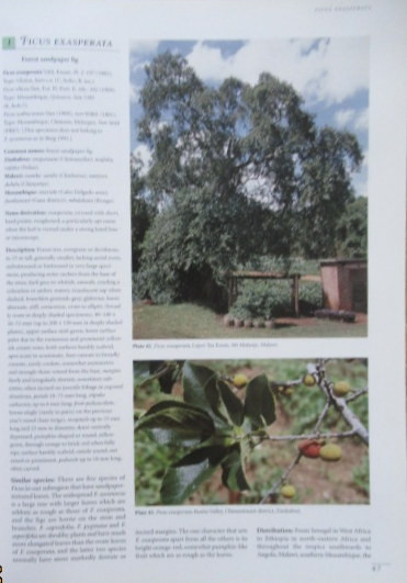 Each indigenous species has a distribution map,a detailed black and white illustration by Sandie Burrows, and photographs depicting habit, bark, leaves and fruit. A key to the indigenous species of figs in southern Africa is provided.