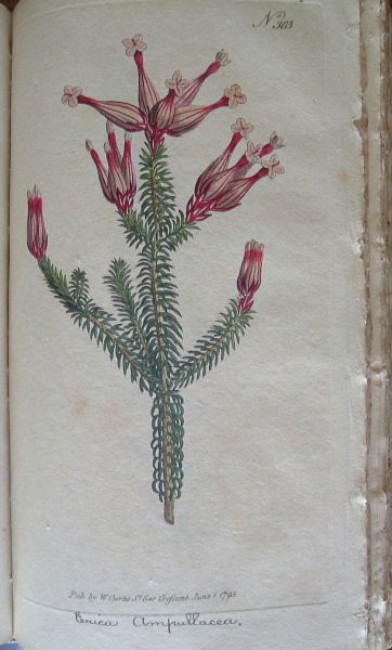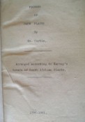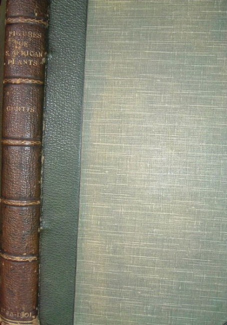 A collection of about 119 hand-coloured engravings of Cape plants, selected from the early years of Curtis\'s Botanical Magazine. Bound into old green half-leather. According to the typed title-page this has been arranged according to Harvey\'s \"Genera of South African Plants.\" The engravings depict popular Cape plants, many from bulb genera, each plate in the original hand-colouring. No text pages are present. KERKHAM #777. These stunning colour plates are a fine example of plants collected at the Cape, some illustrated here for the first time. A nice addition to an African botanical collection. Covers a bit rubbed, some browning & foxing.