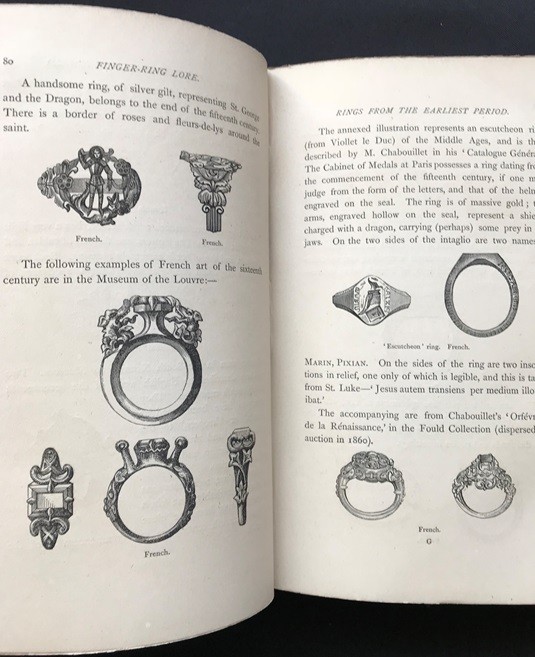 A fascinating study of ring-lore from the earliest period to the Nineteenth Century. Includes sections on superstitions, ecclesiastical, betrothal and wedding rings, token rings, memorial and mortuary, and remarkable rings.