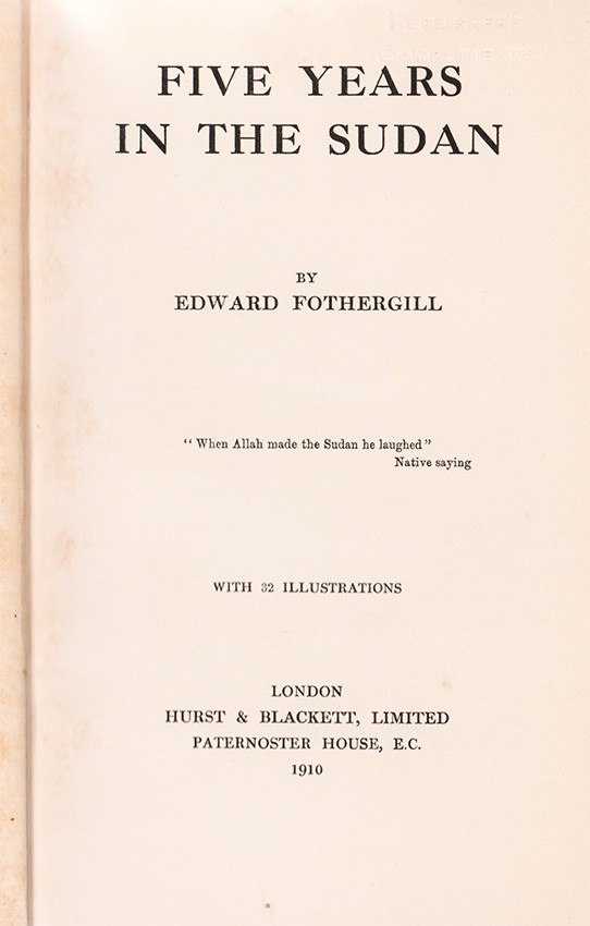 Czech (Dr. Kenneth P.) An Annotated Bibliography of African Big Game Hunting Books 1785 – 1999, page 100: The author travelled through the then unexplored region of the Bahr-el-Abyad and the Bahr-el-Ghazal to hunt elephant and hippo. He followed the Blue Nile and writes of the wealth of sport along its banks, succeeding in collecting more elephant as well as crocodile, lion, and varieties of antelope. Quite a valuable book for its description of the terrain and peoples as well.