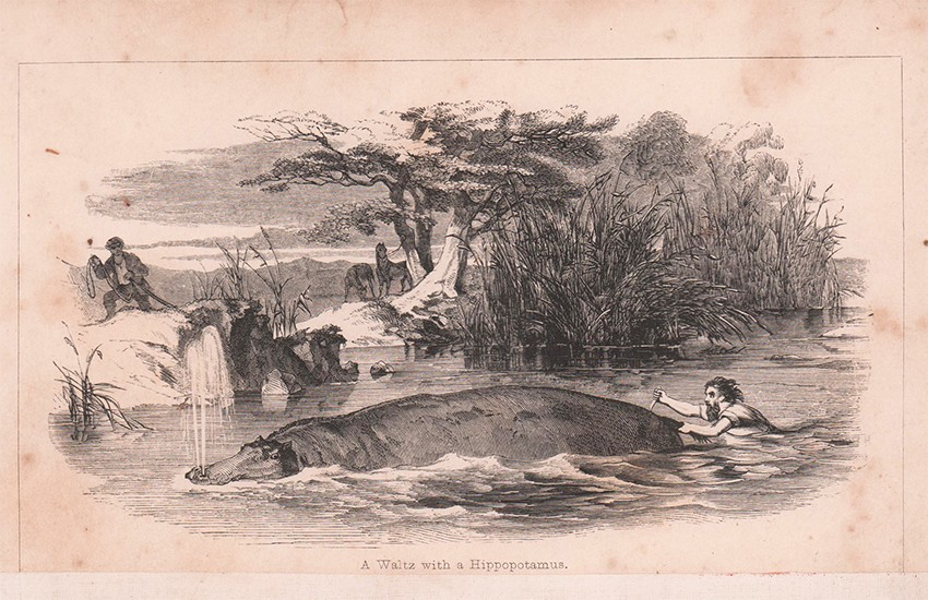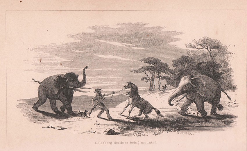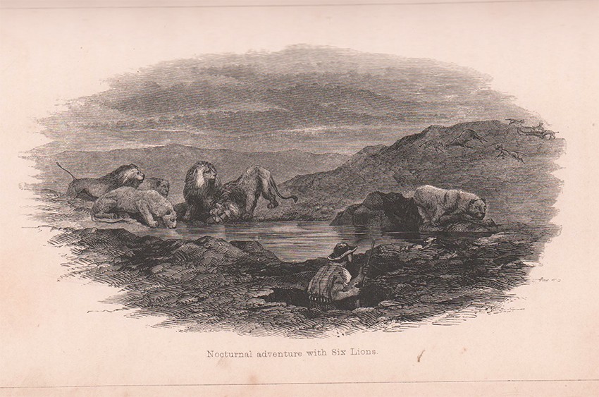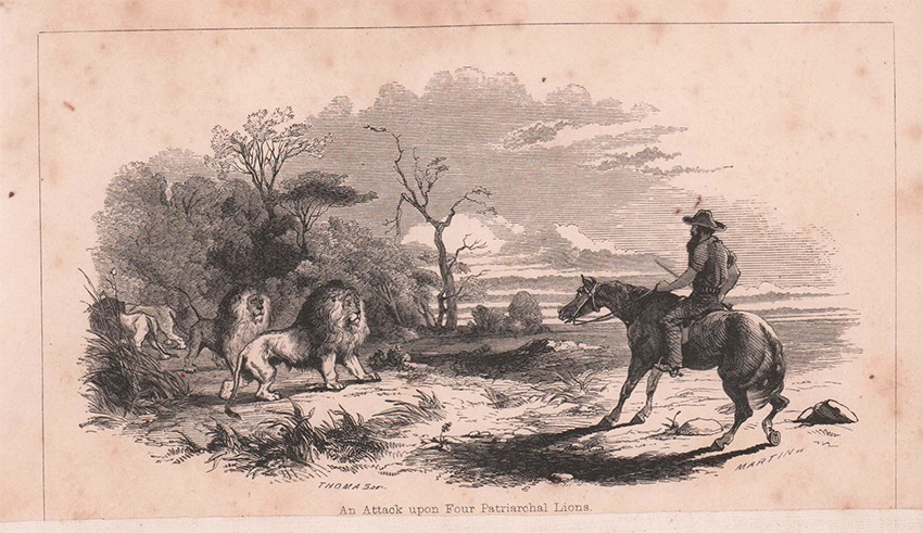 Cumming started on October 23, 1843, from Grahamstown, in the direction of Albany and the Great Fish River, and passing through Cradock, soon found himself in a country which was absolutely teeming with game. He got on well with the Boers. After a surfeit of springbok hunting, the author proceeded to the Orange River and Griqualand West, and soon after met Messrs. Murray and Oswell, and later, on arriving at Kuruman, was welcomed by Mr. Moffat. After a few days' stay at Kuruman he recommenced his travels, and soon after met David Livingstone, who gave him plenty of information respecting hunting and exploring. Gordon Cumming appears to have hunted every species of South African fauna, and to have enjoyed an amount of sport almost unique even amongst the mighty hunters of Africa.