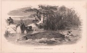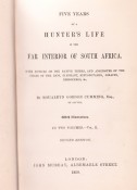 Cumming started on October 23, 1843, from Grahamstown, in the direction of Albany and the Great Fish River, and passing through Cradock, soon found himself in a country which was absolutely teeming with game. He got on well with the Boers. After a surfeit of springbok hunting, the author proceeded to the Orange River and Griqualand West, and soon after met Messrs. Murray and Oswell, and later, on arriving at Kuruman, was welcomed by Mr. Moffat. After a few days' stay at Kuruman he recommenced his travels, and soon after met David Livingstone, who gave him plenty of information respecting hunting and exploring. Gordon Cumming appears to have hunted every species of South African fauna, and to have enjoyed an amount of sport almost unique even amongst the mighty hunters of Africa.