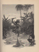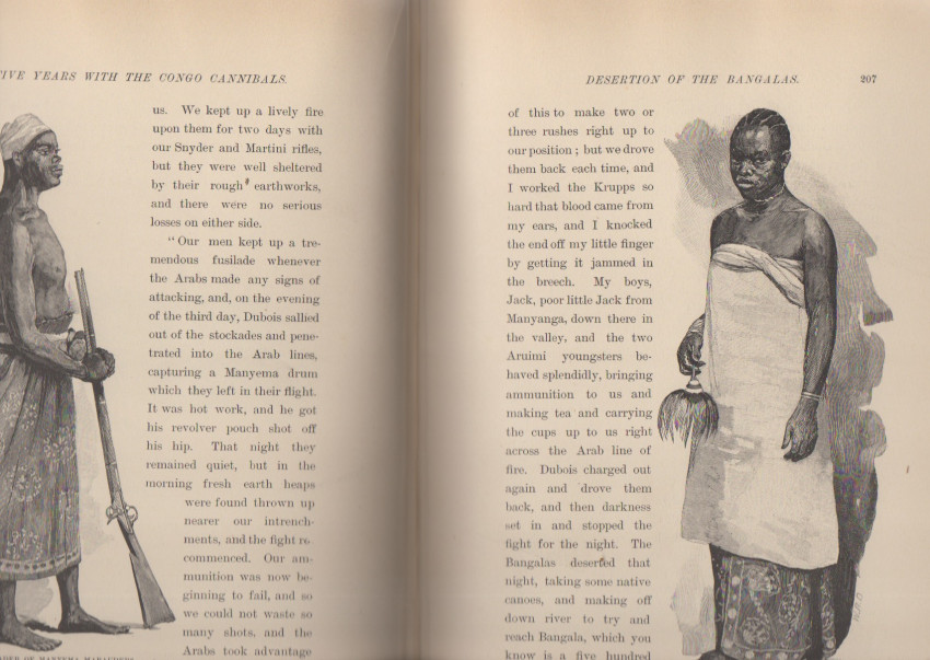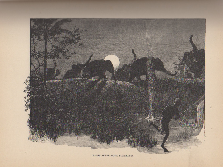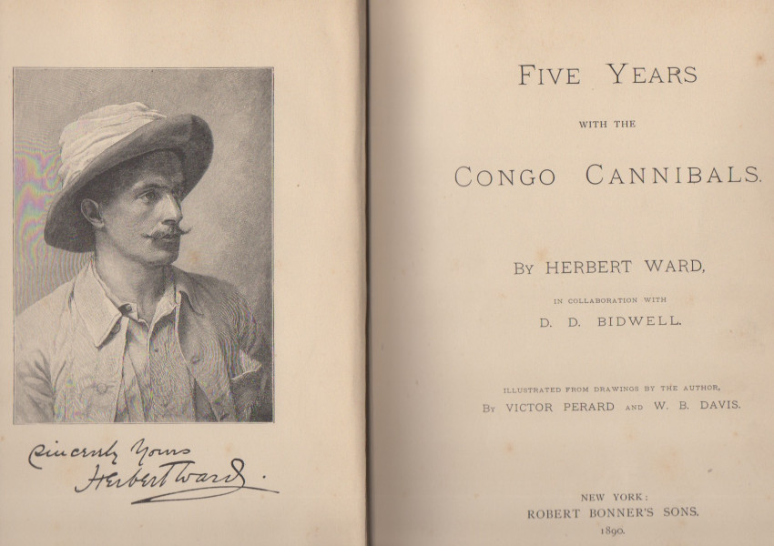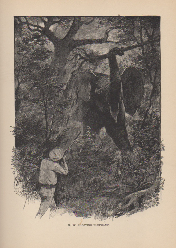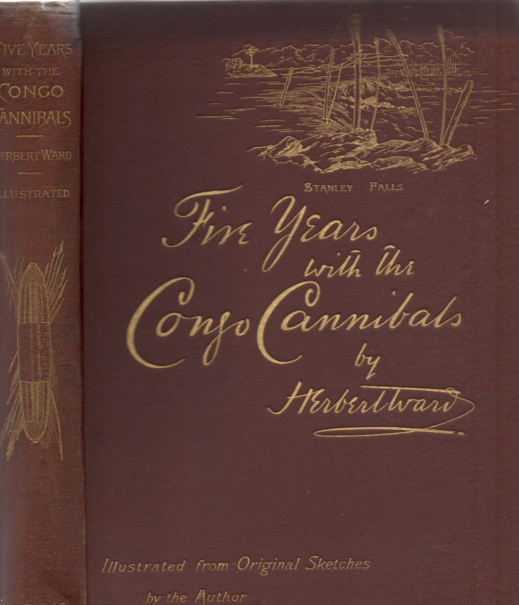 A well illustrated work, this details Ward's travels with Henry Stanley into the Congo. While most of the text concerns travel and exploration, the author experienced attacks by hippos, adventures with cannibal tribes, and bagging a marauding bull elephant, with an excellent, full page illustration highlighting the scene. Original brown cloth with gilt titles and vignette on cover and spine. Original patterned endpapers, both inner hinges starting. Contents clean and tight. Overall, a very good copy.