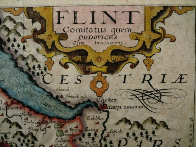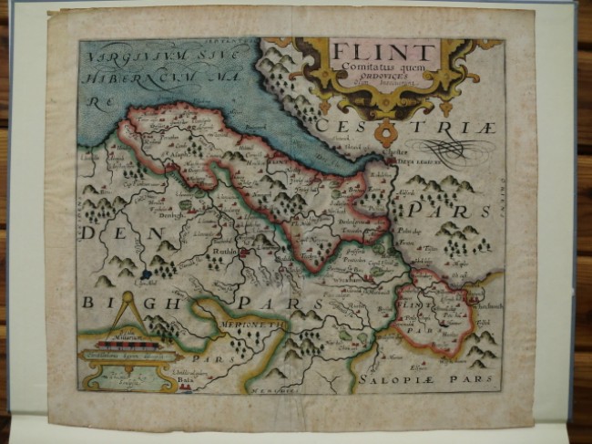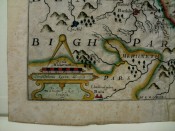 Condition: the paper is in good condition with the expected yellowing due to its age, the two pages neatly joined (join visible on the rear); the map is uniformly spotted/foxed, the paper is wrinkled, and the edges are chipped. The engravings are crisp and the hand-colouring is of a very high quality - providing a very good example of the art of map printing of the early 17th century.