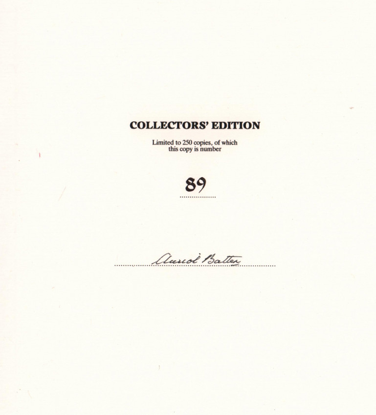Collectors’ Edition limited to 250 copies of which this copy in number 89. Signed by the author.