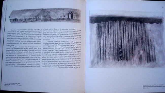 William Kentridge's Flute traces the process of the artist's creation of 'The Magic Flute'. The book, edited by Bronwyn Law-Viljoen, now publisher at Fourth Wall Books, contains an interview with the artist, essays by Stéphane Roussel and Kate McCrickard, , pages from Kentridge’s preparatory notebooks, and images of the many prints and drawings executed while Kentridge was working on the opera and Black Box.