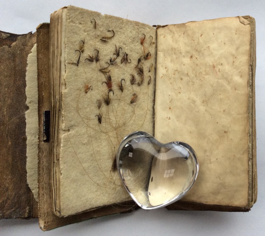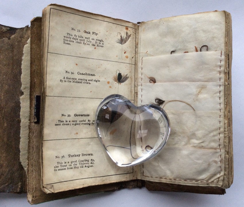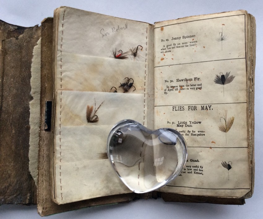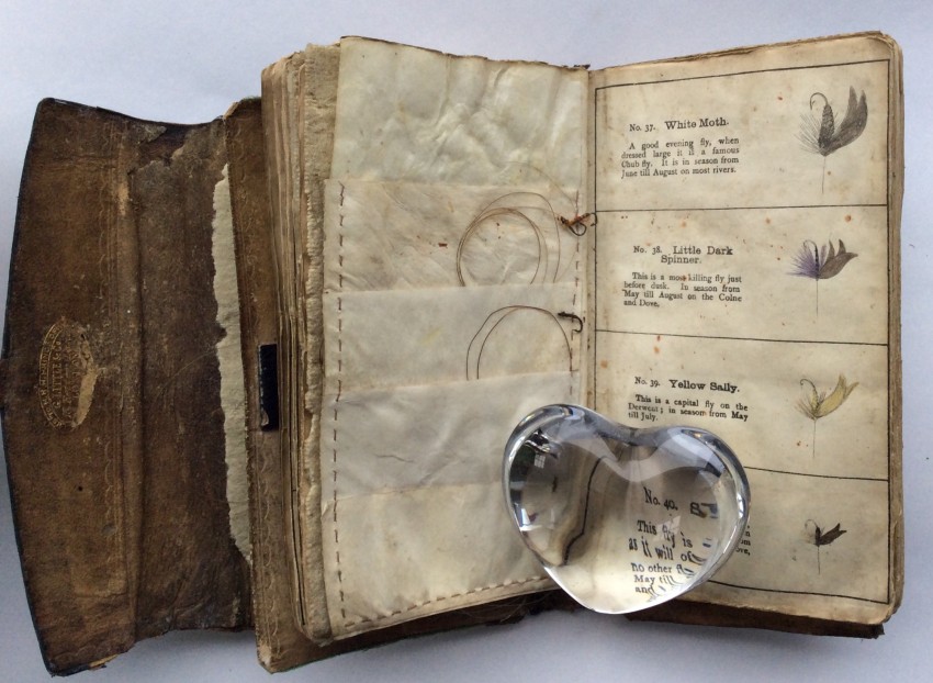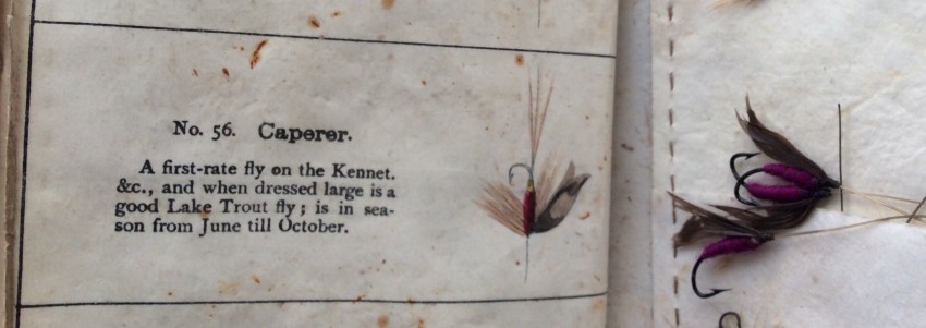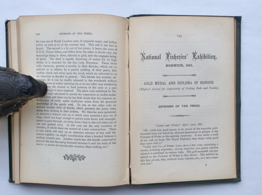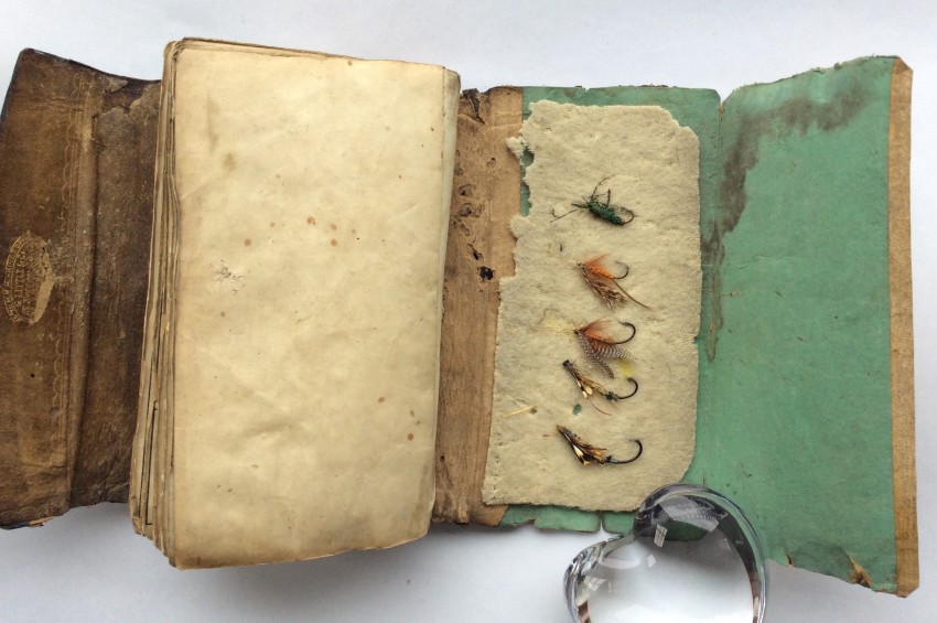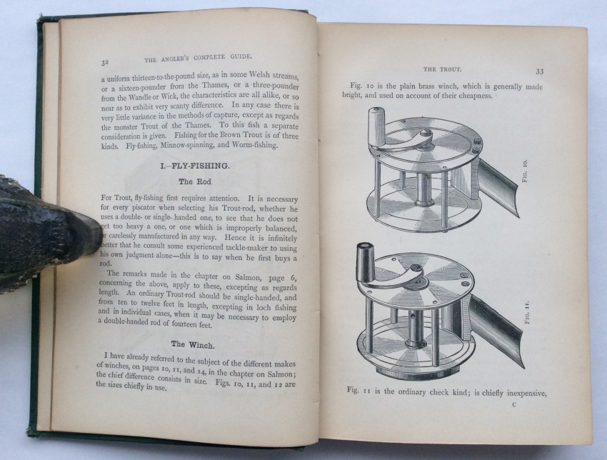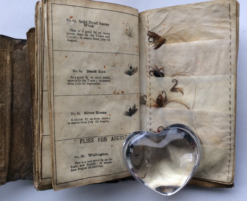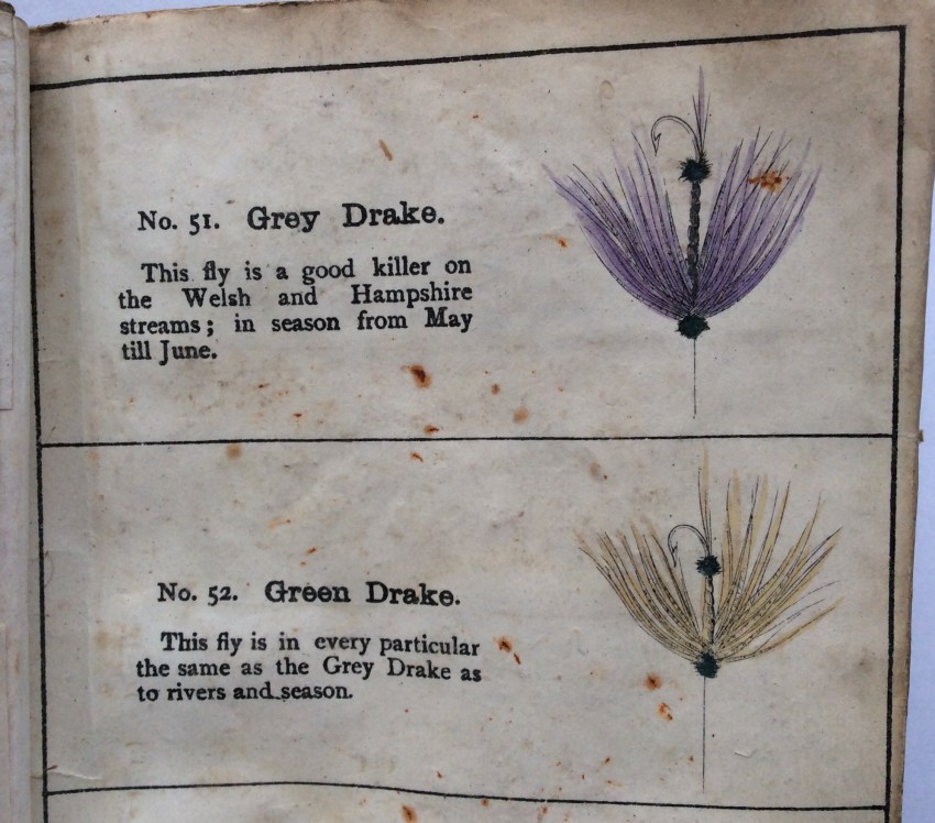The author notes on p. 35: 'I am now making arrangements for the production of a fly-book of an entirely new and novel character. It consists of an interleaved book with pockets to contain flies of the months, names, etc. Printed on parchment [i.e. vellum], immediately near and on the opposite page, exactly corresponding to each kind are shown illustrations in colours of the artificial flies in the pockets'. Westwood & Satchell p.xx