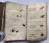 [London: G. Little & Co., 15 Fetter Lane, no date but circa 1882], small 8vo (6 1/2 x 3 1/2 inches), on vellum throughout, 44 pages (including drophead title and introduction on the first page, letterpress printed descriptions on 20 pages of 76 flies, the description of each fly accompanied by a FINE HAND-COLOURED ILLUSTRATION of the fly described, the text with 20 facing pages offering a total of 80 pockets in which there are approximately 190 ACTUAL FLIES loosely inserted, at the centre are 2 felt leaves for mounting in centre, displaying a total of approx. 112 ACTUAL FLIES, in addition there are two inserted felt leaves, one displaying 4 larger actual flies.