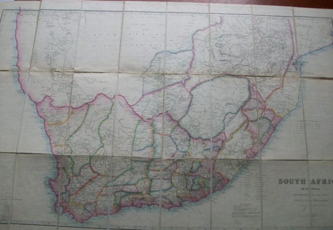 Folded Map, backed to lined in dark brown slipcase with original label.24 folded panels to this scarce map of South Africa.