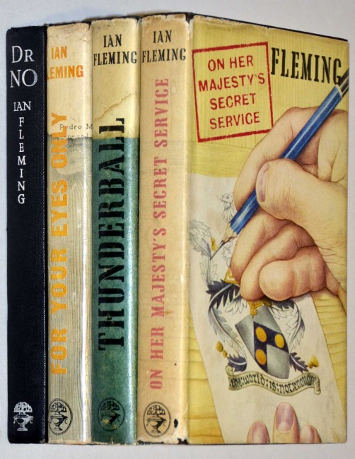 3. Thunderball. 1961. Bookseller's label on lower front pastedown otherwise an about fine copy in a very good price-clipped dw. which has some slight edge wear and a 1cm. tear with associated creasing at the lower fore edge of the front panel. The dw. also has a few light internal stains which are barely visible externally.