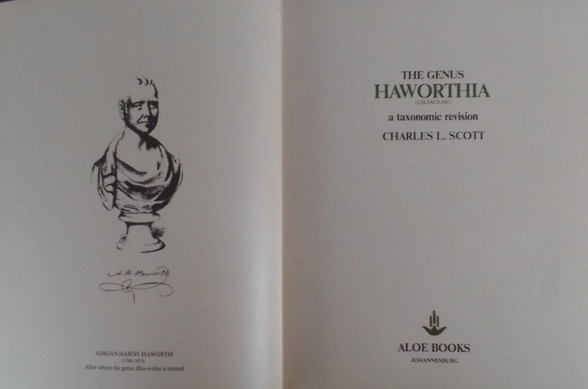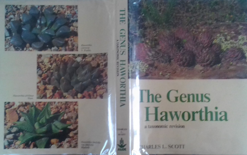 #2. Scott, Charles L. The Genus Haworthia. A taxonomic revision. Aloe Books, Johannesburg, 1985. Quarto, plastic-covered unclipped colour-illustrated dustjacket, green Skivertex boards with gilt lettering to the spine, colour map to both endpapers, i-xxix/150/xxx-xl pp of prelims, colour- and b/w-illustrated text, glossary, abbreviations and index. A fine copy