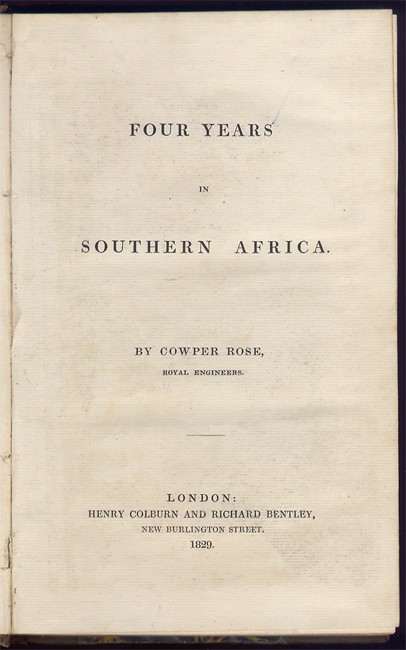Mendelssohn (S.) A South African Bibliography, volume 2, pages 248/9, ‘Sketches of life in the Cape Colony and Kaffraria during the first quarter of the nineteenth century. There is some information respecting the lives of the Boers of the interior at this period, with a description of the Hottentots and Kaffirs, and of the slave system of the country, together with some sporting tales….’
