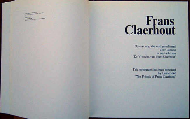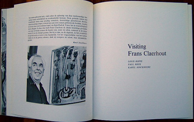 142pp. Cloth hardcover with DW. Blind-embossed title to front board and spine. Illustrated in colour and B/W throughout with several tipped on colour plates of Frans Claerhout's paintings. Original Frans Claerhout pen-sketch to half-title page. Ex Libris paste-down to front fixed EP (from the library of Prof. D.M.Joubert (ex rector of The University of Pretoria). Text in Dutch , Afrikaans and English. A well illustrated, thorough monograph.